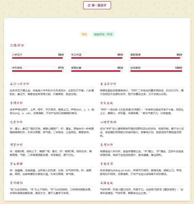 姓名生成器中国风版自动适应单页html源码,这个姓名生成器网页采用了传统中国风格设计,提供专业八字起名服务,结合周易命理、生辰八字分析,为宝宝提供吉祥好听的名字。