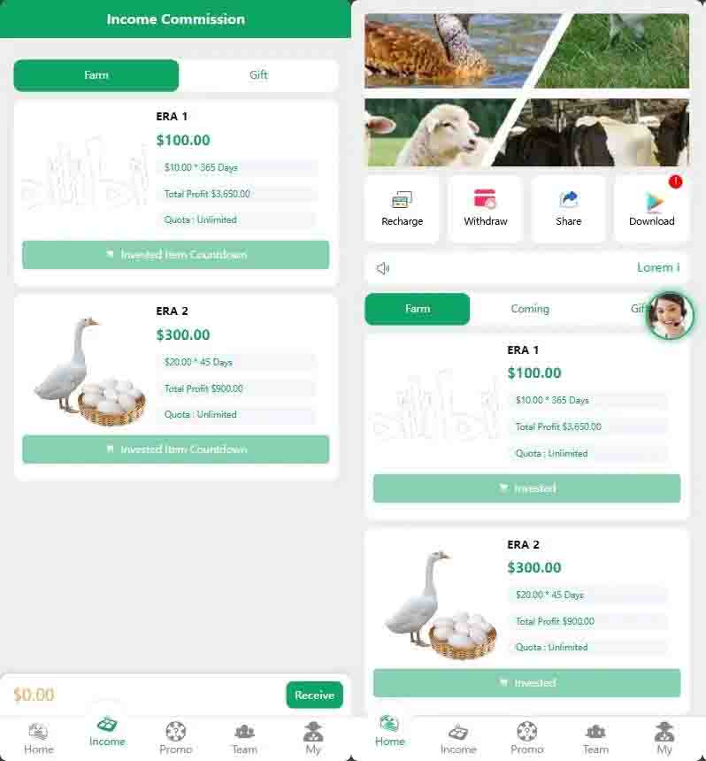 英文海外鸡鸭养殖挖矿奶牛基金矿机投资理财源码,功能够用,没有什么特殊的,UI比较简洁,还算可以。ng php8.1 msq5.7